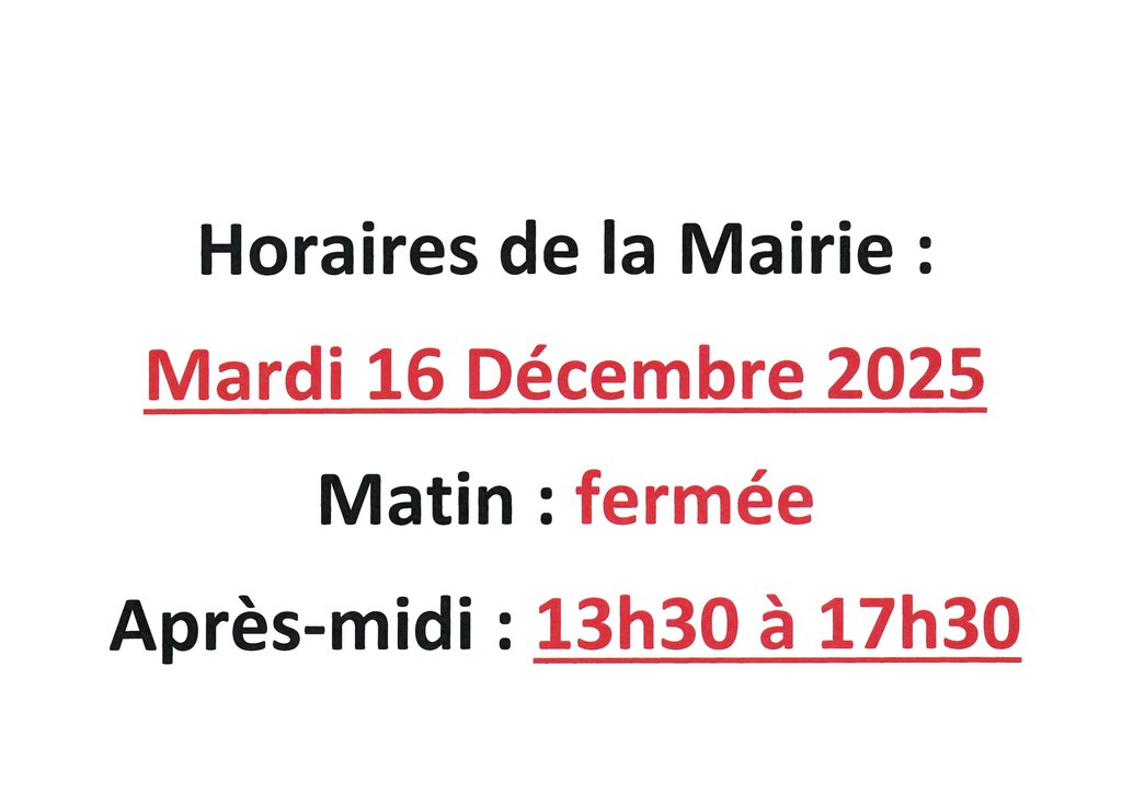 HORAIRES MAIRIE : MARDI 16 DÉCEMBRE 2025