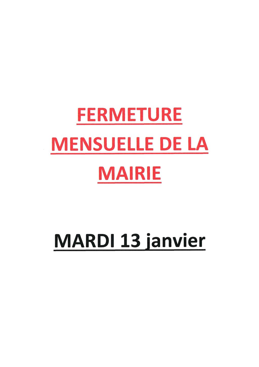 FERMETURE MENSUELLE DE LA MAIRIE