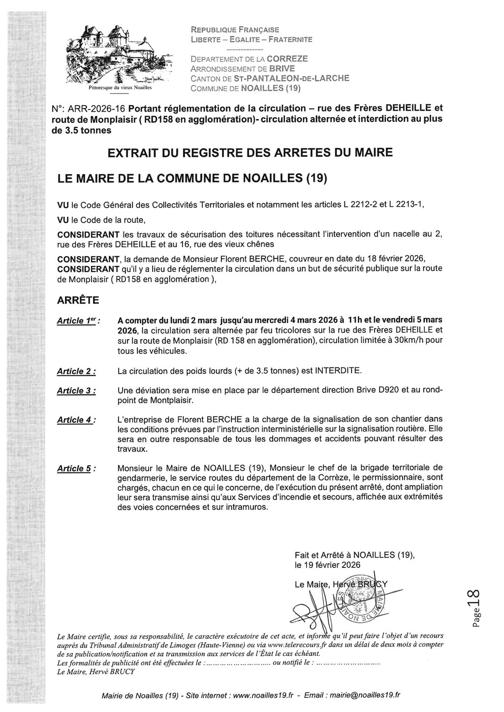 RÉGLEMENTATION DE LA CIRCULATION RUE DES FRÈRES DEHEILLE ET ROUTE DE MONTPLAISIR DU 2 AU 5 MARS 2026