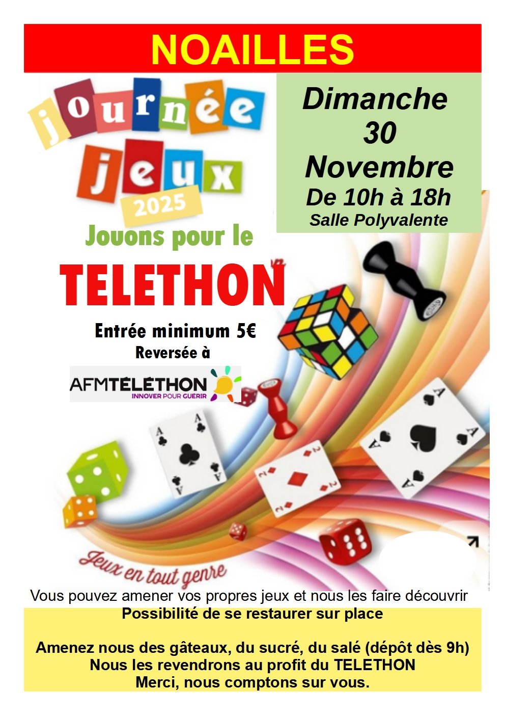 Venez jouer pour le Téléthon avec possibilité de se restaurer sur place